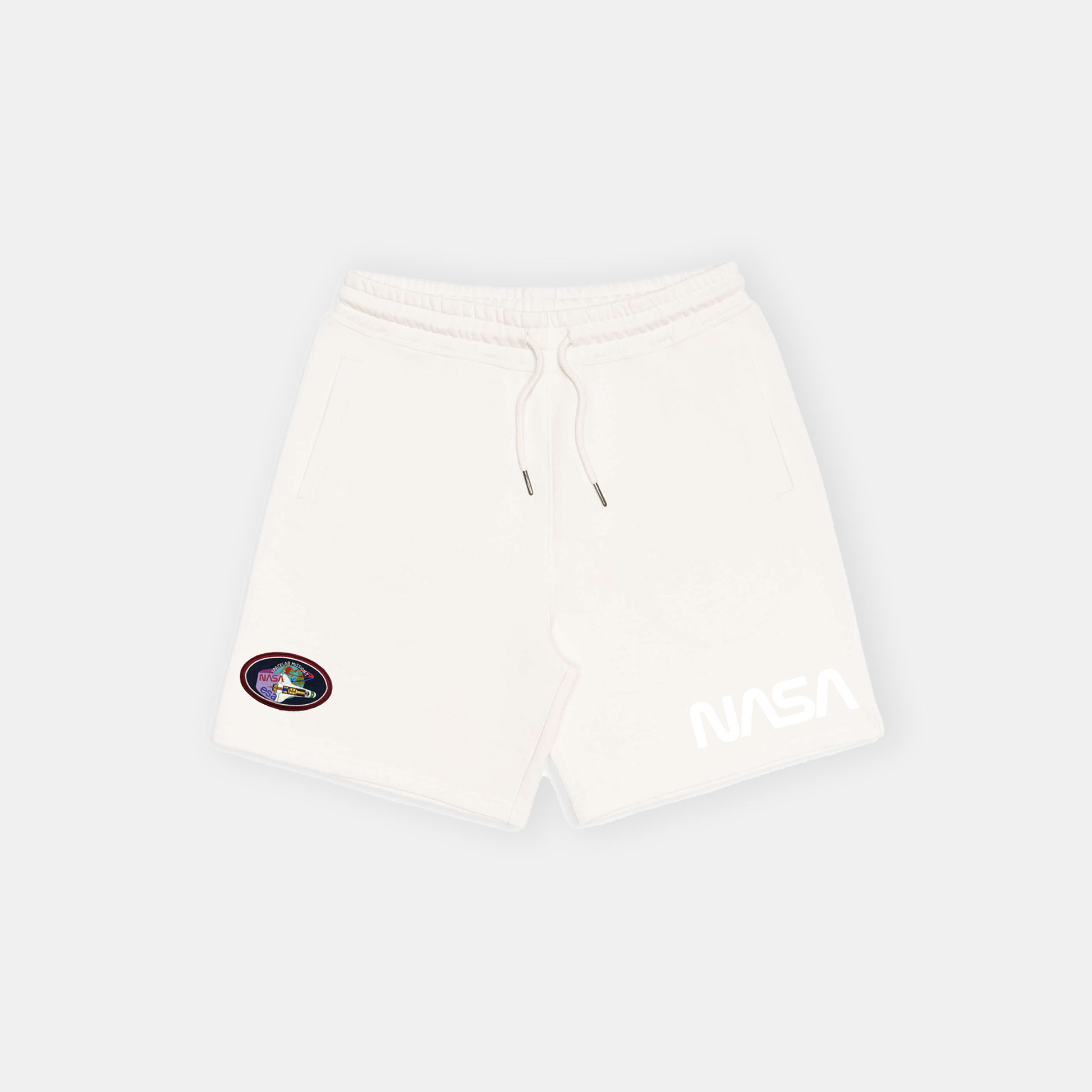 A soft neutral base, stitched with global legacy. These shorts feature the STS-9 patch — the mission that brought together scientists from around the world. Subtle and structured.